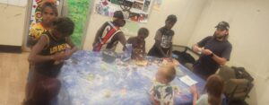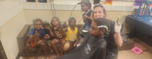 Alongside the music fun, there was a colourful and expressive art workshop where young people had the chance to get hands on with their creative sides. The art space was a big hit, filled with proud culture, strong stories, and amazing talent. To top it all off, we had a very special visitor—Esme from Hair Bar Central—who brought her skills and style to town, giving haircuts and styles to all the kids and youth. From fresh fades to new braids, Esme helped everyone feel confident and look their best. Her warm energy and professional touch made a huge impact, and the kids absolutely loved it!